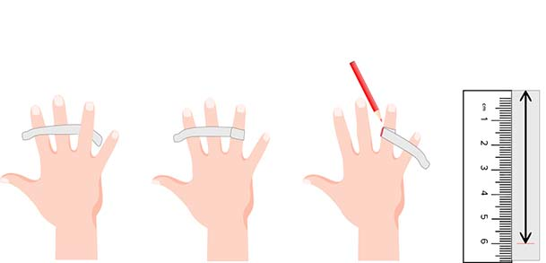 Just wrap the soft tape measure around the broadest part of your wrist and take note of the length. If you are using a plain strip of paper, mark your size with a pen or pencil then use a ruler to measure the length (The starting end of the paper must be at the base of the ruler and marked 0). That would be your wrist size.